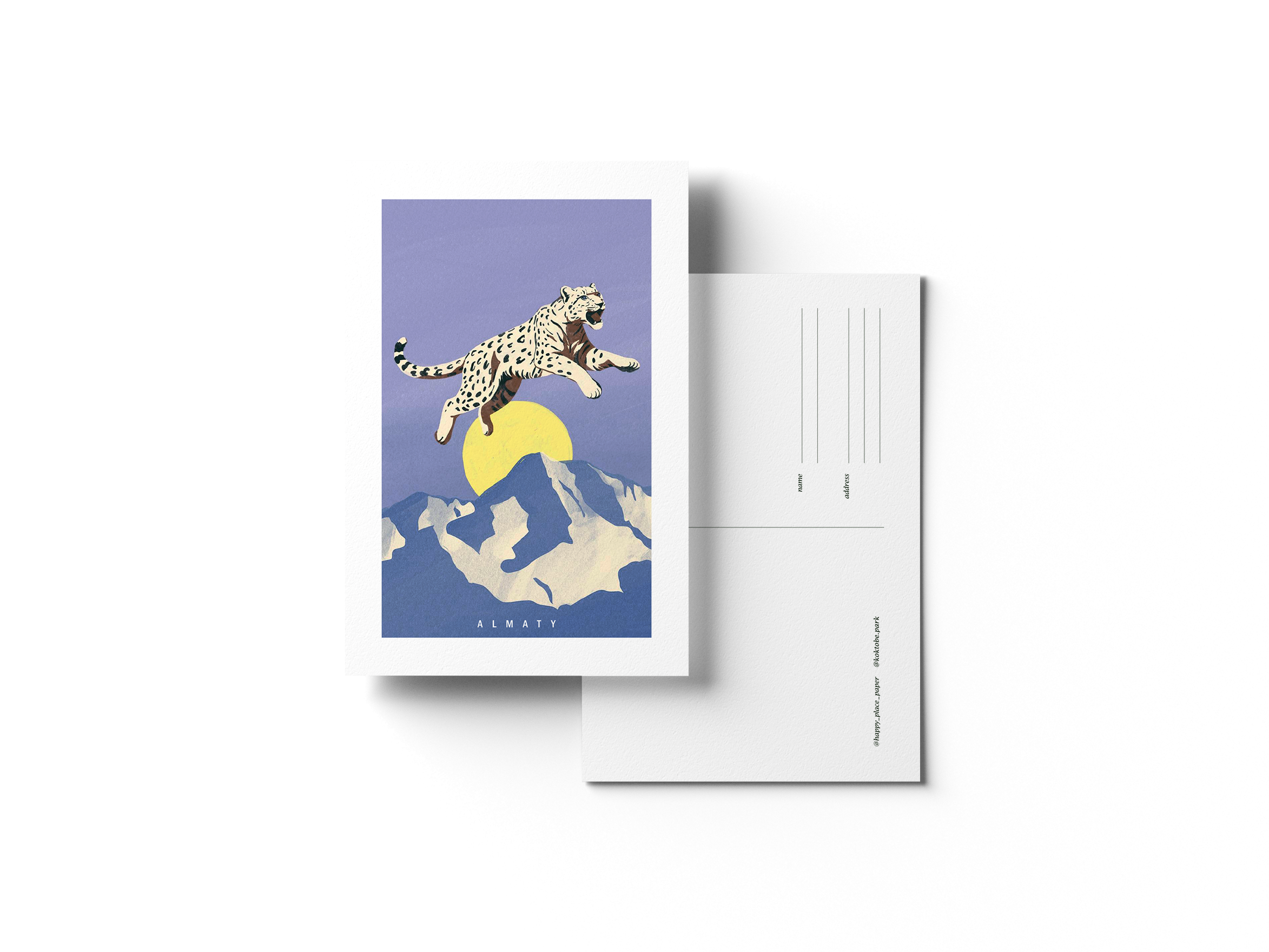 Серия открыток в коллаборации с Коктобе и Happy Place — это живые зарисовки особенного места. Здесь и знаковое колесо обозрения, ставшее символом этого уголка, и кабинка, медленно поднимающаяся в тишине под нежным закатным небом. Открытки передают уютные виды с местного ресторана и яркую карусель, наполняющую пространство детской радостью. Особое место занимает волшебный барс, бегущий над горами под полной луной, и тёплая семейная сцена — момент единения с природой и близкими на просторах Коктобе.