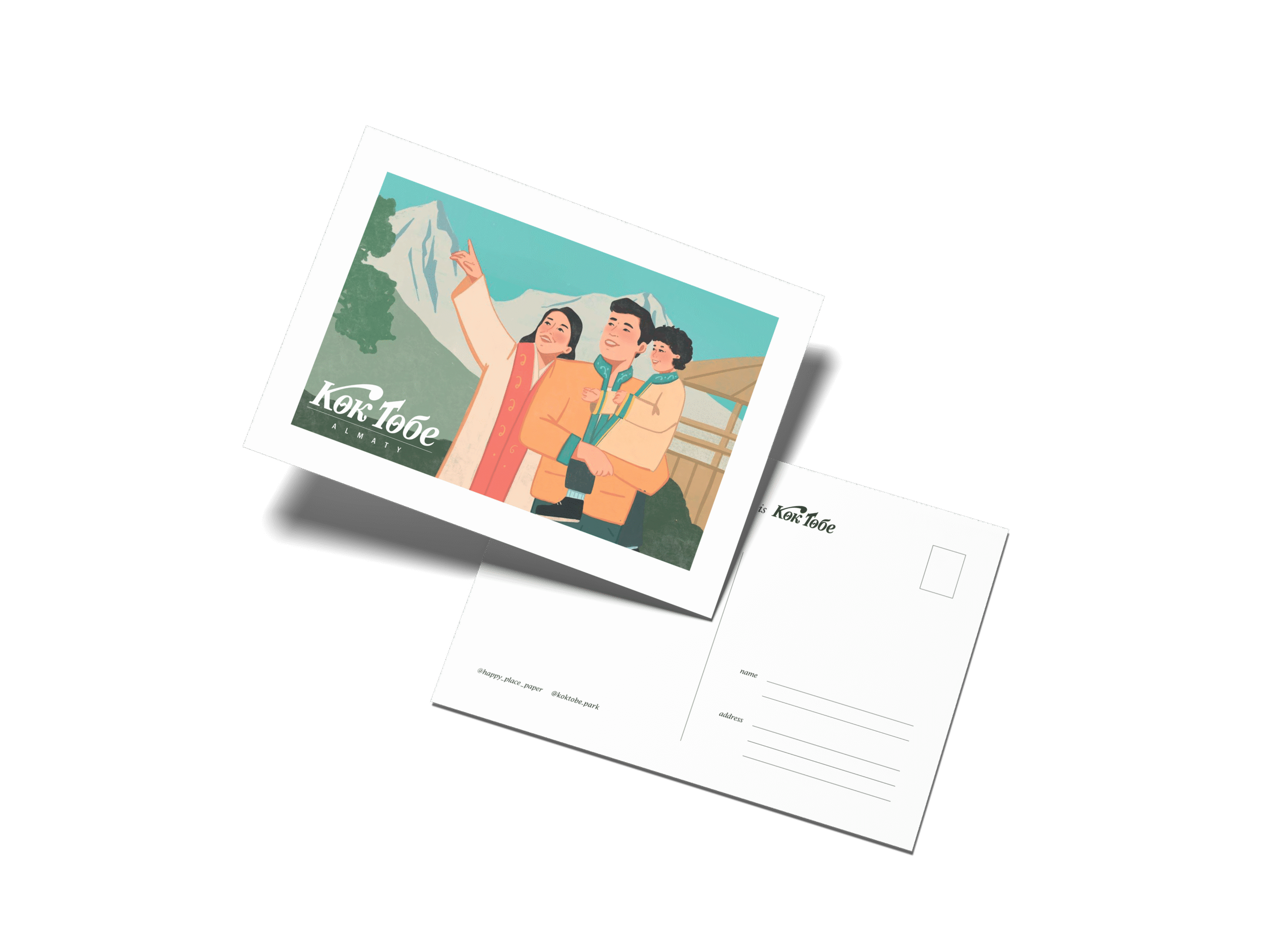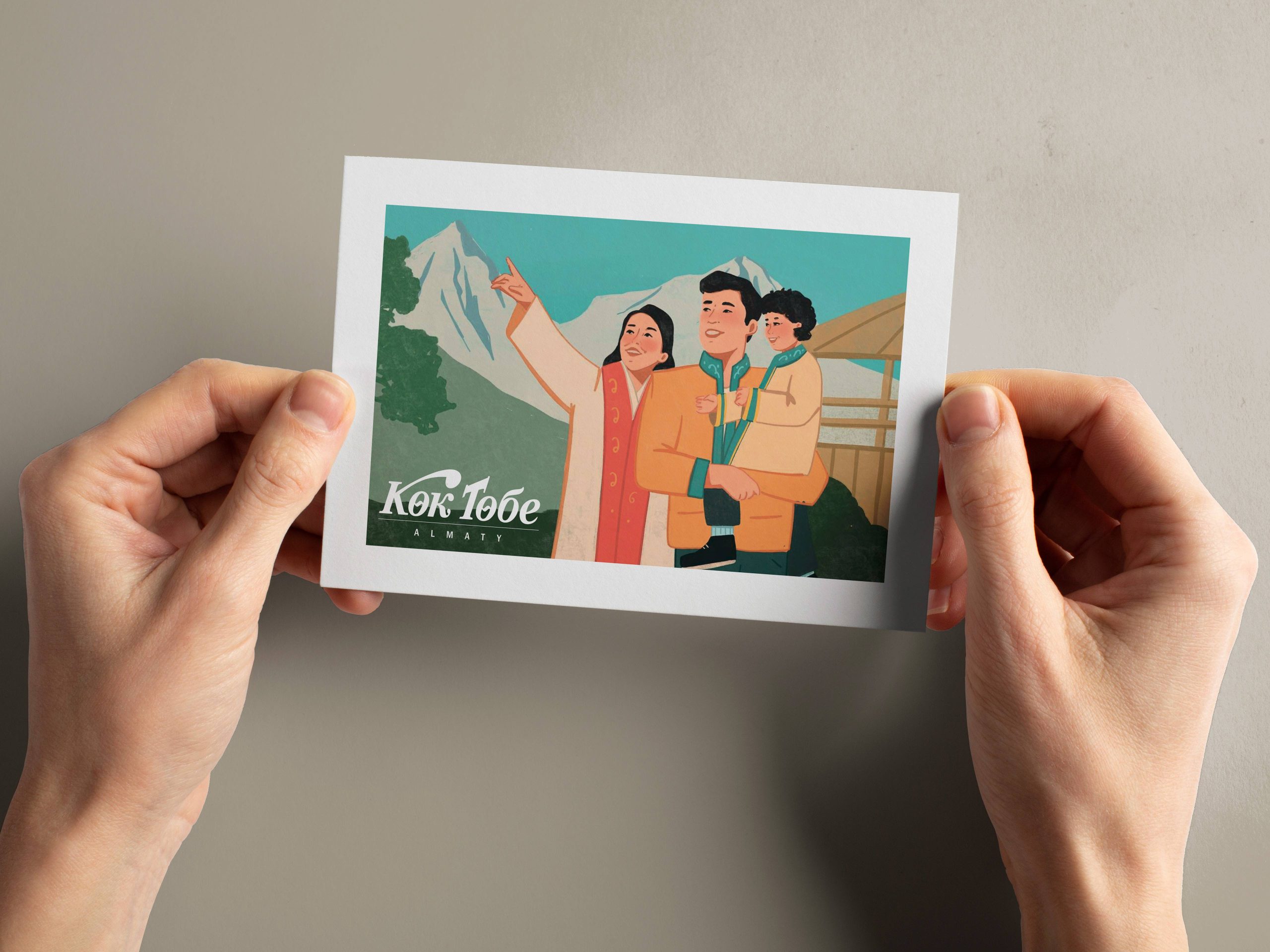 Серия открыток в коллаборации с Коктобе и Happy Place — это живые зарисовки особенного места. Здесь и знаковое колесо обозрения, ставшее символом этого уголка, и кабинка, медленно поднимающаяся в тишине под нежным закатным небом. Открытки передают уютные виды с местного ресторана и яркую карусель, наполняющую пространство детской радостью. Особое место занимает волшебный барс, бегущий над горами под полной луной, и тёплая семейная сцена — момент единения с природой и близкими на просторах Коктобе.