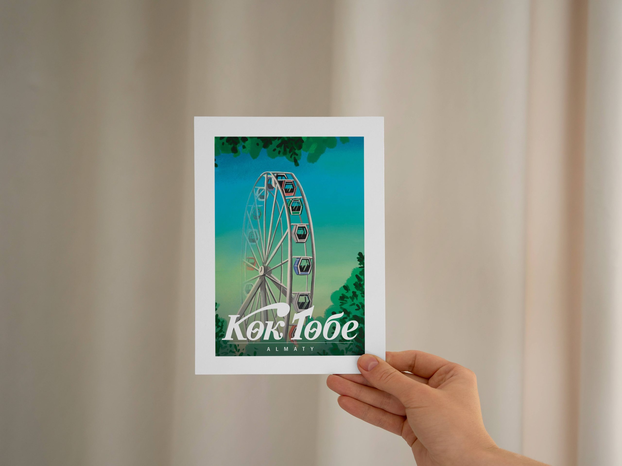 Серия открыток в коллаборации с Коктобе и Happy Place — это живые зарисовки особенного места. Здесь и знаковое колесо обозрения, ставшее символом этого уголка, и кабинка, медленно поднимающаяся в тишине под нежным закатным небом. Открытки передают уютные виды с местного ресторана и яркую карусель, наполняющую пространство детской радостью. Особое место занимает волшебный барс, бегущий над горами под полной луной, и тёплая семейная сцена — момент единения с природой и близкими на просторах Коктобе.