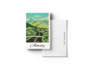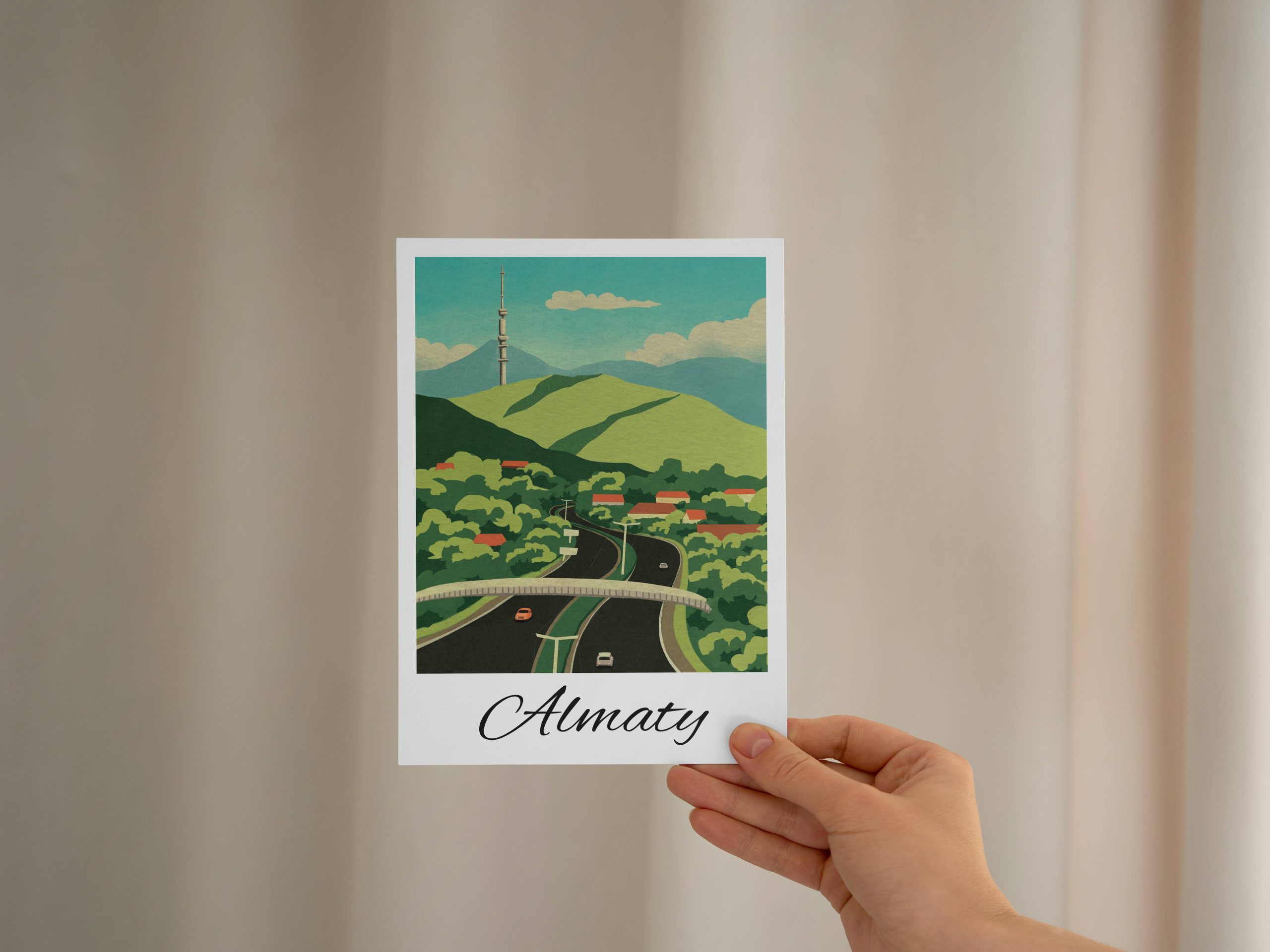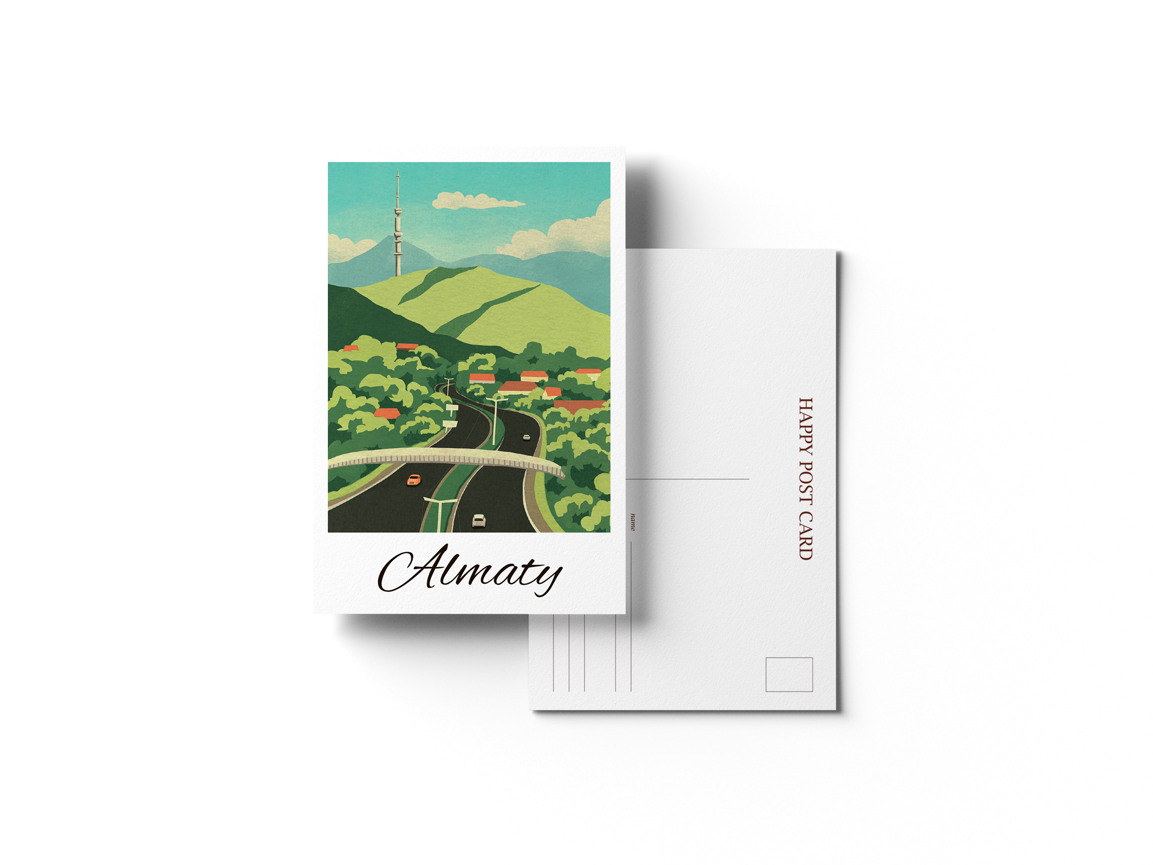 Открытка из серии, посвящённой Алматы, в духе лёгкой ностальгии и винтажной теплоты. Открытка как символ возвращения домой и ностальгии по городу у подножия гор.