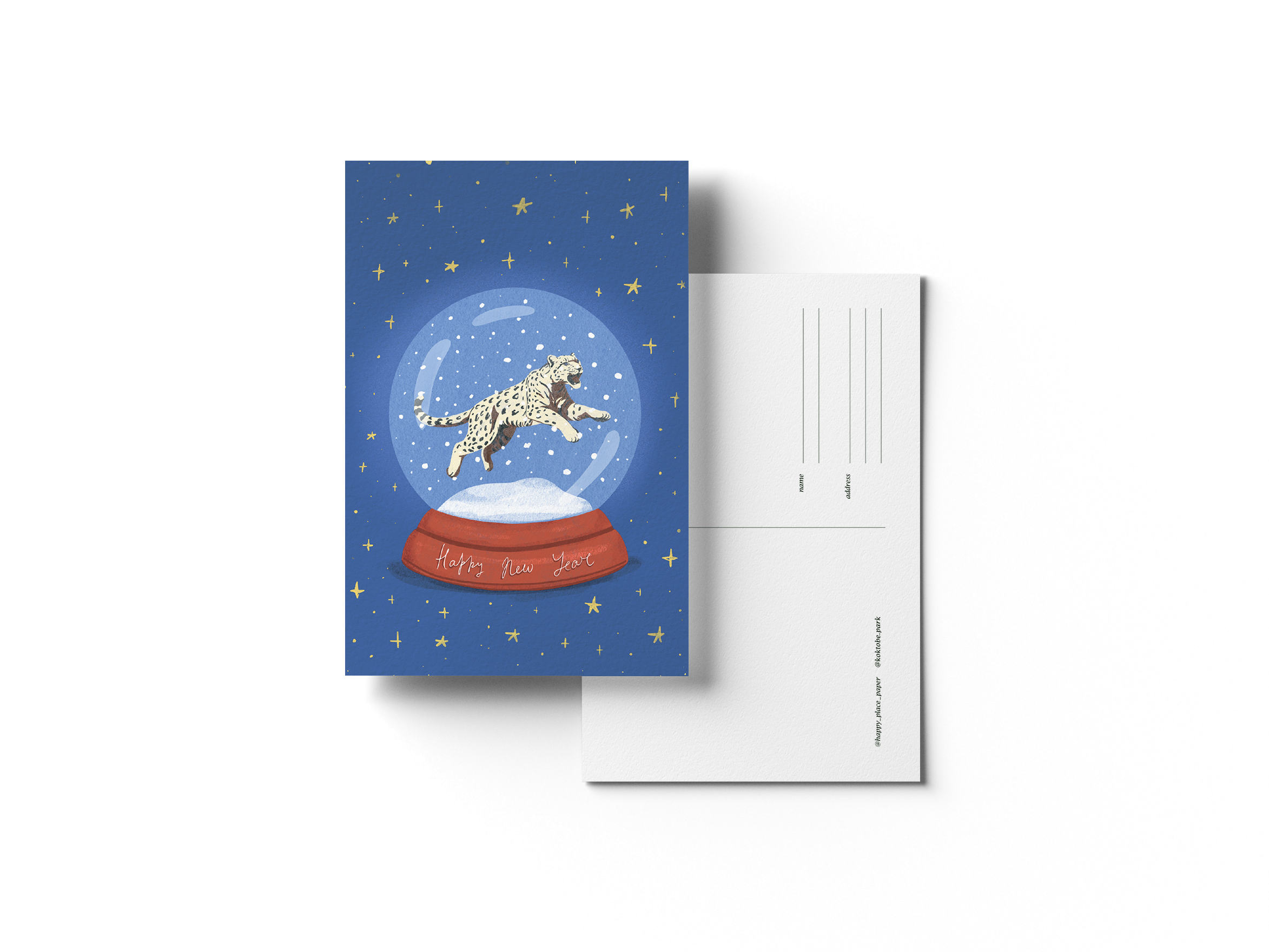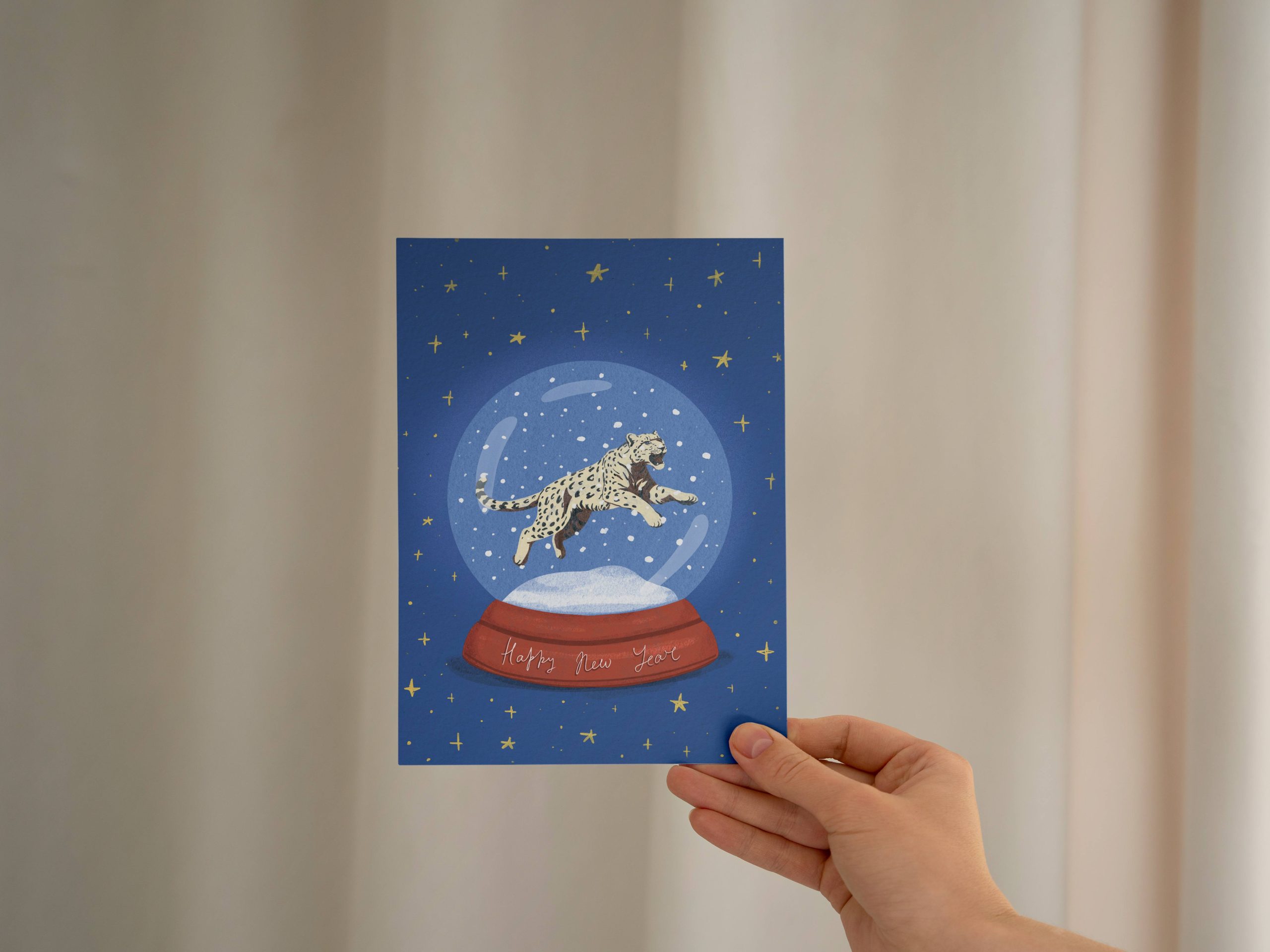 Новогодняя открытка с волшебным Снежным барсом.