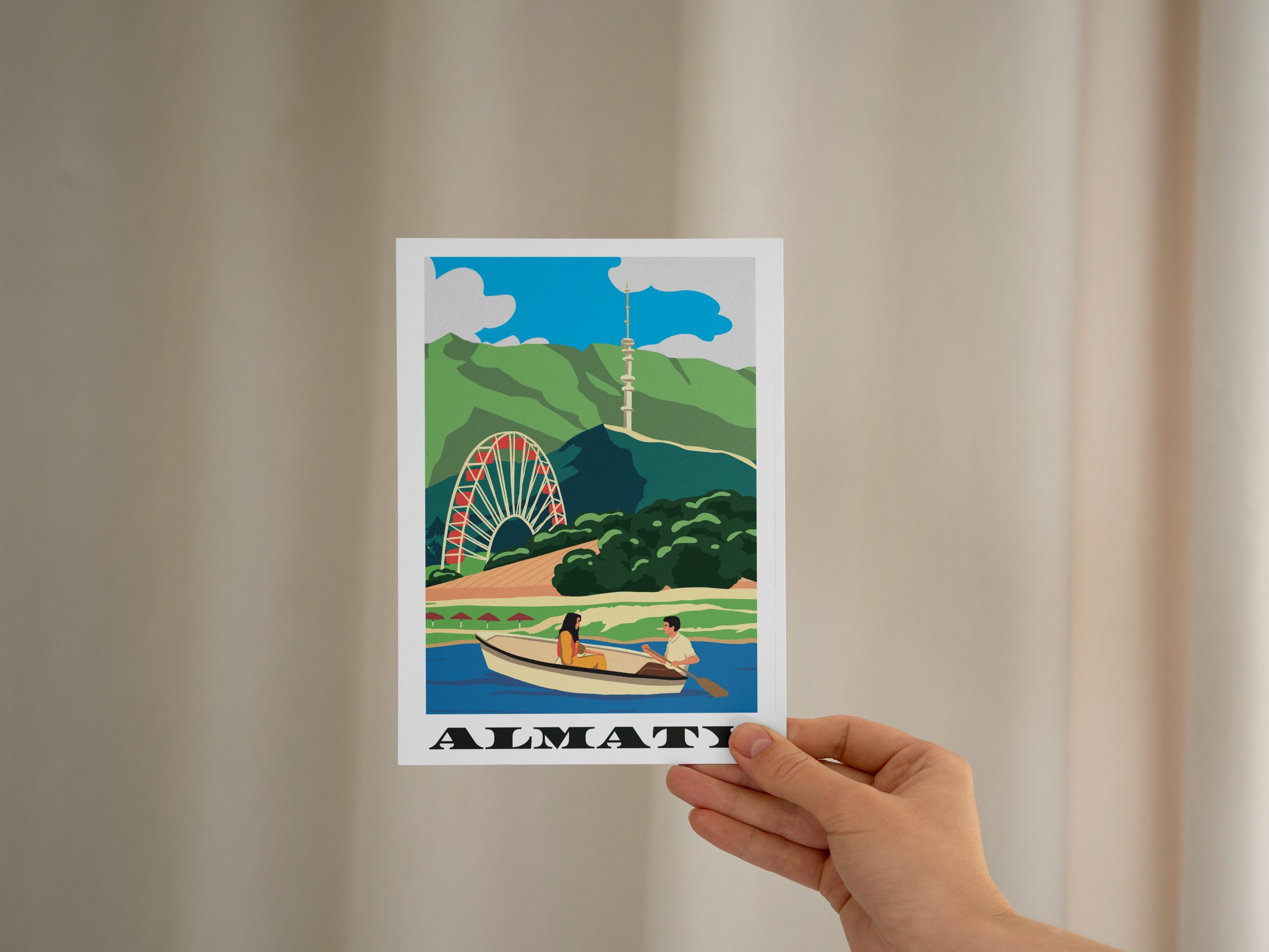 Открытка из серии, посвящённой Алматы, в духе лёгкой ностальгии и винтажной теплоты.